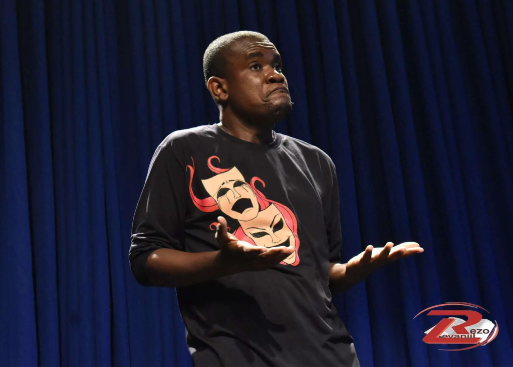 The audience wanted to laugh. To laugh at the name of the President of the Republic, now synonymous with lies. To laugh at the “pastor-God” of Delmas who must authorize everything in his church. Even the solo pleasures of his flock that only God should see. To laugh at the words of Jean Charles Moïse… to laugh at Ayiti where everything is upside down. Amos César’s first show, Itiya, at Le Villate, on Sunday August 11, was a success. Confirmed!Amos César in one of these very successful stage plays