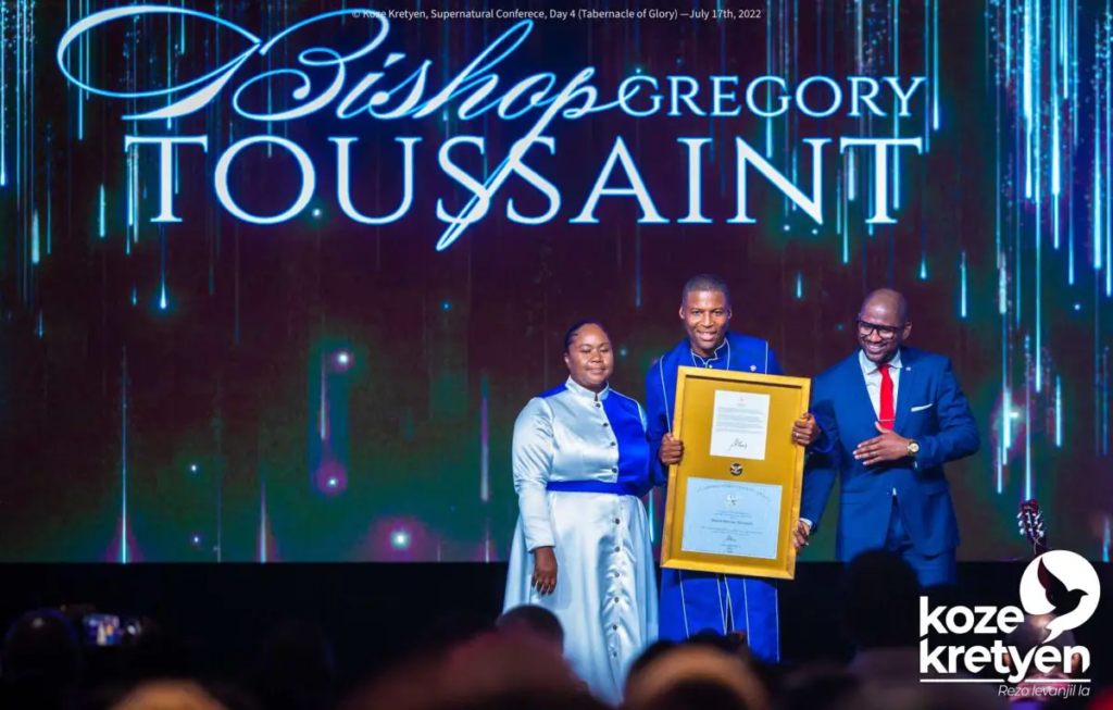 Dr. Jason Renville was responsible for presenting and presenting this award to Bishop Toussaint who was accompanied on stage by his wife, Pastor Patricia Toussaint, just after his ordination ceremony held a few minutes before.